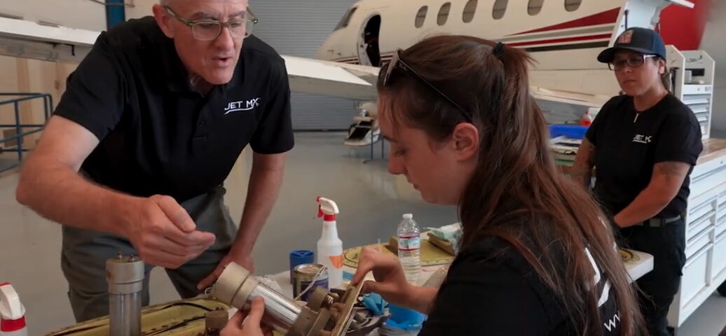 Goodyear, AZ – Jet MX, Inc., an FAA-certified aviation maintenance repair station based at Phoenix-Goodyear Airport (FAA 145CRS #JETR229E), operates an aircraft maintenance apprentice program certified by the state of Arizona’s Department of Economic Security (DES). DES agency representatives recently visited Jet MX and produced a feature segment on the program.